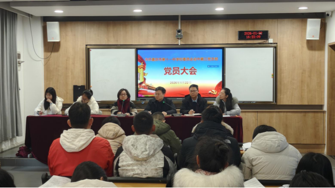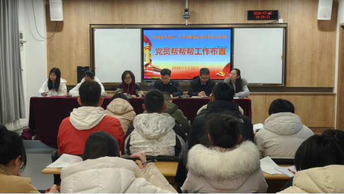 为深入学习贯彻党的最新理论成果与上级会议精神,筑牢党员思想根基,凝聚奋进力量,2026年1月22日,中共重庆市第十一中学校委员会初中第三党支部召开1月党员大会。会议由支部书记李江主持,全体党员同志参会,以集中学习、专题研讨和工作部署相结合的形式,推动理论学习走深走实,为新学期教育教学工作高质量发展蓄能。
